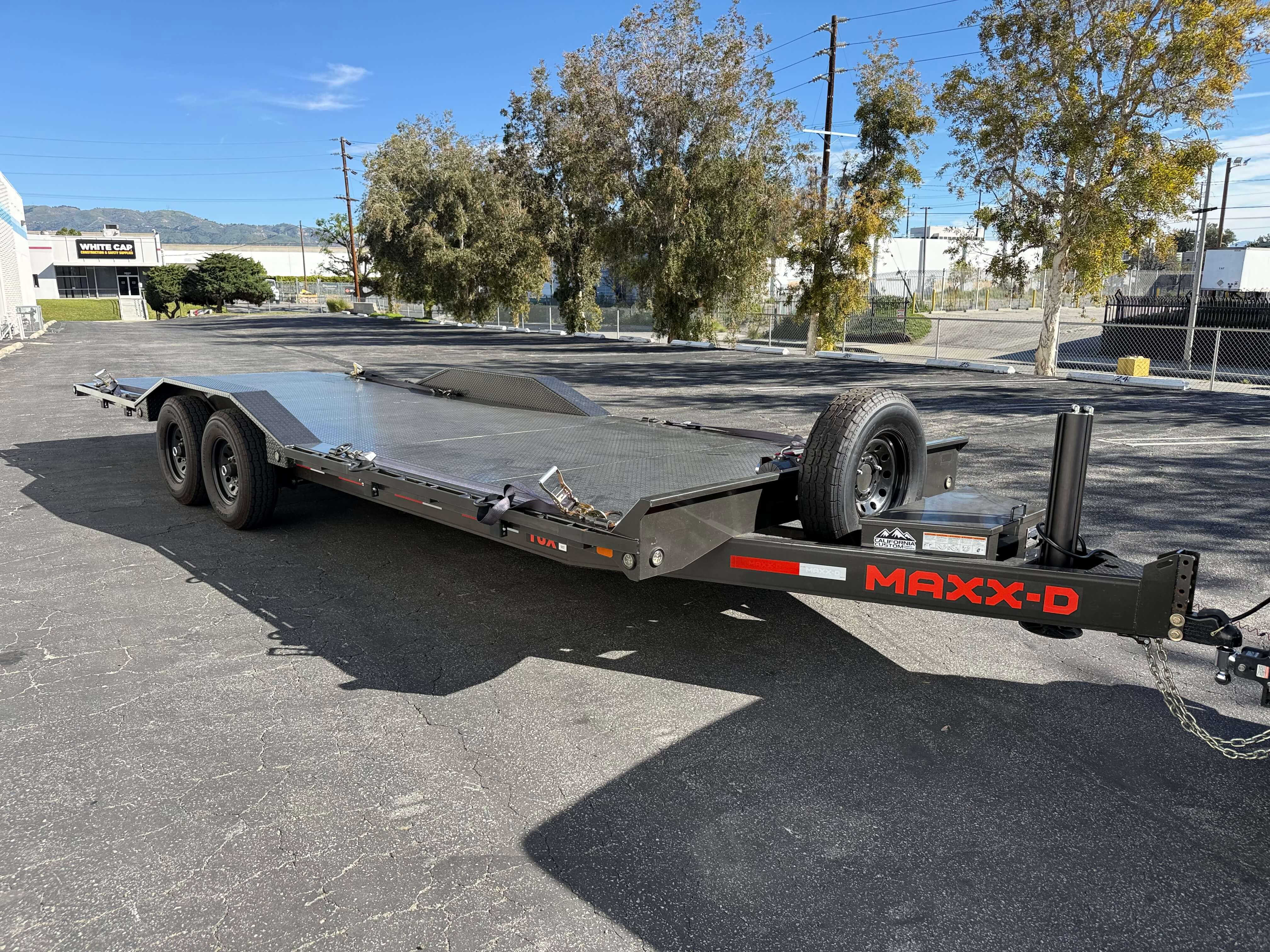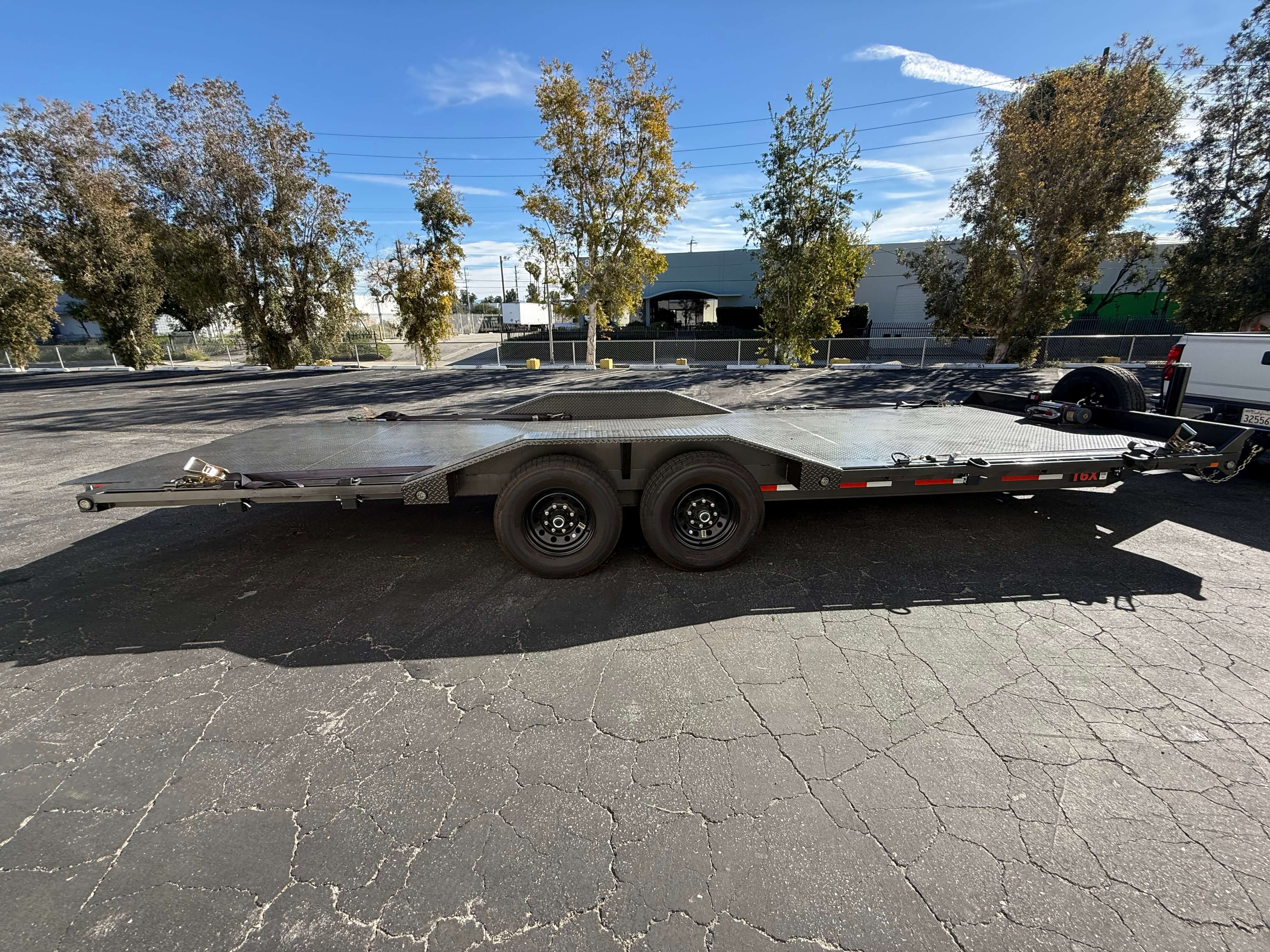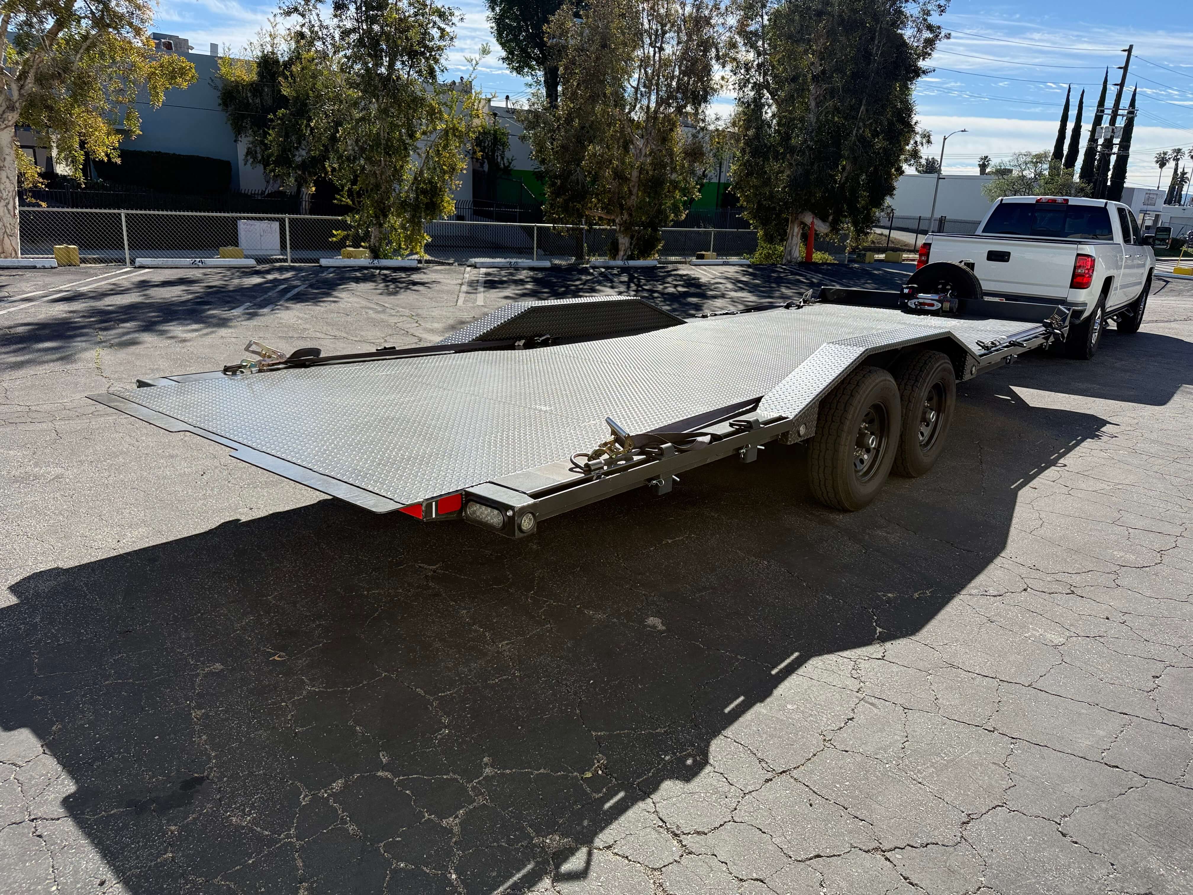 24' Long Metal Car/Equipment Trailer, 2 5/16 Ball. No Ramps, Hydraulic Tilt Deck, Hydraulic Jack